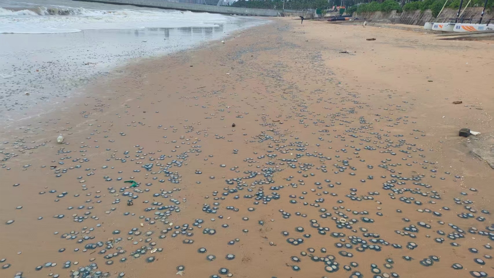 海口西海岸出現(xiàn)大量銀幣水母 專家:有毒,應避免主動觸碰!